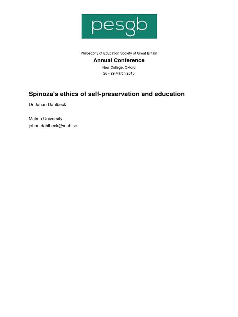 Johan Dahlbeck - Spinoza's Ethics of Self-Preservation and Education