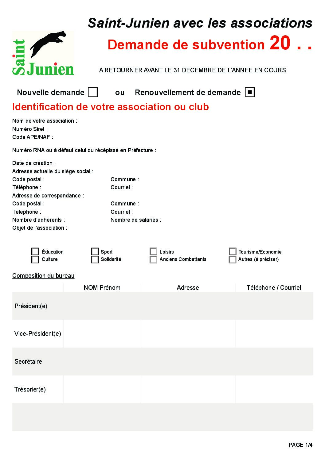 Demande Subvention Education Nationale.